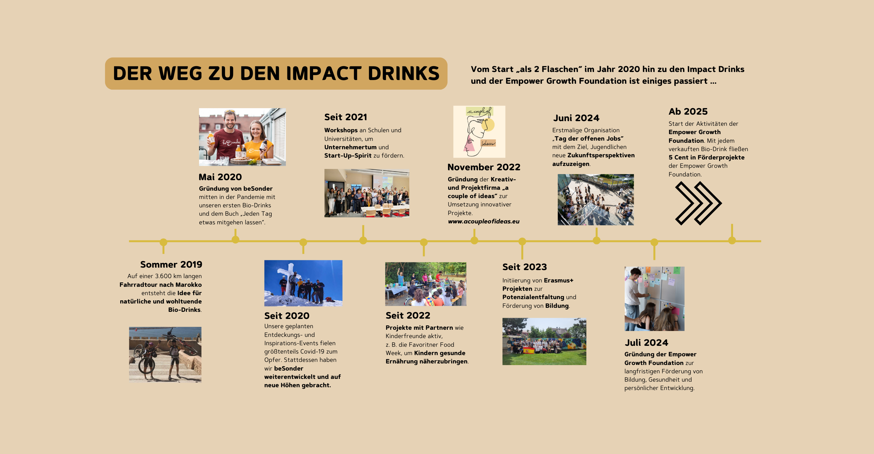 Mit jeder Flasche, die du genießt, erzeugst du Impact – für dich und die Welt um dich herum. 5 Cent pro Flasche fließen direkt in die Empower Growth Foundation, die Projekte in den Bereichen Bildung, Gesundheit und Potenzialentfaltung unterstützt.